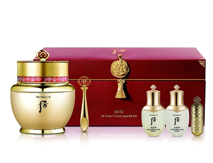 LG生活健康旗下品牌Whoo为祈祷新年福运和平安,推出了一款秘贴自润面霜特别版。其外观采用了“宫廷莲花结”设计,是一款可让肌肤恢复光泽的抗衰老产品。它包括秘贴自润面霜、天气丹水乳基础护理系列、宫廷玉颜口红一支(23#粉橙红色)。