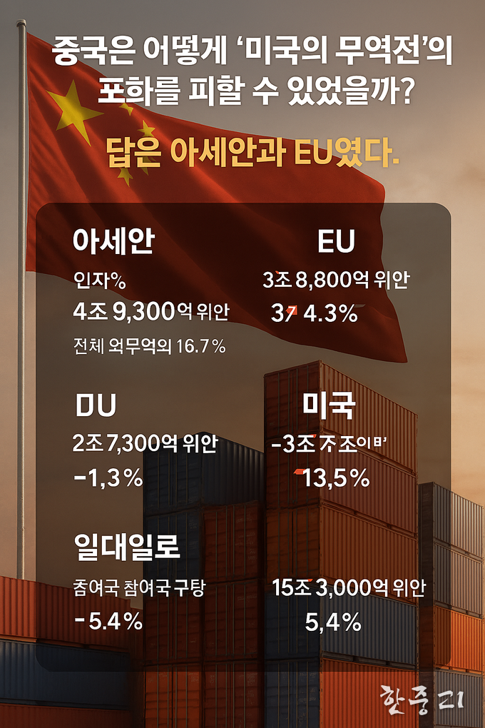 중국의 아세안·EU 대상 수출입이 크게 증가했다고 중국 매체들이 전했다.